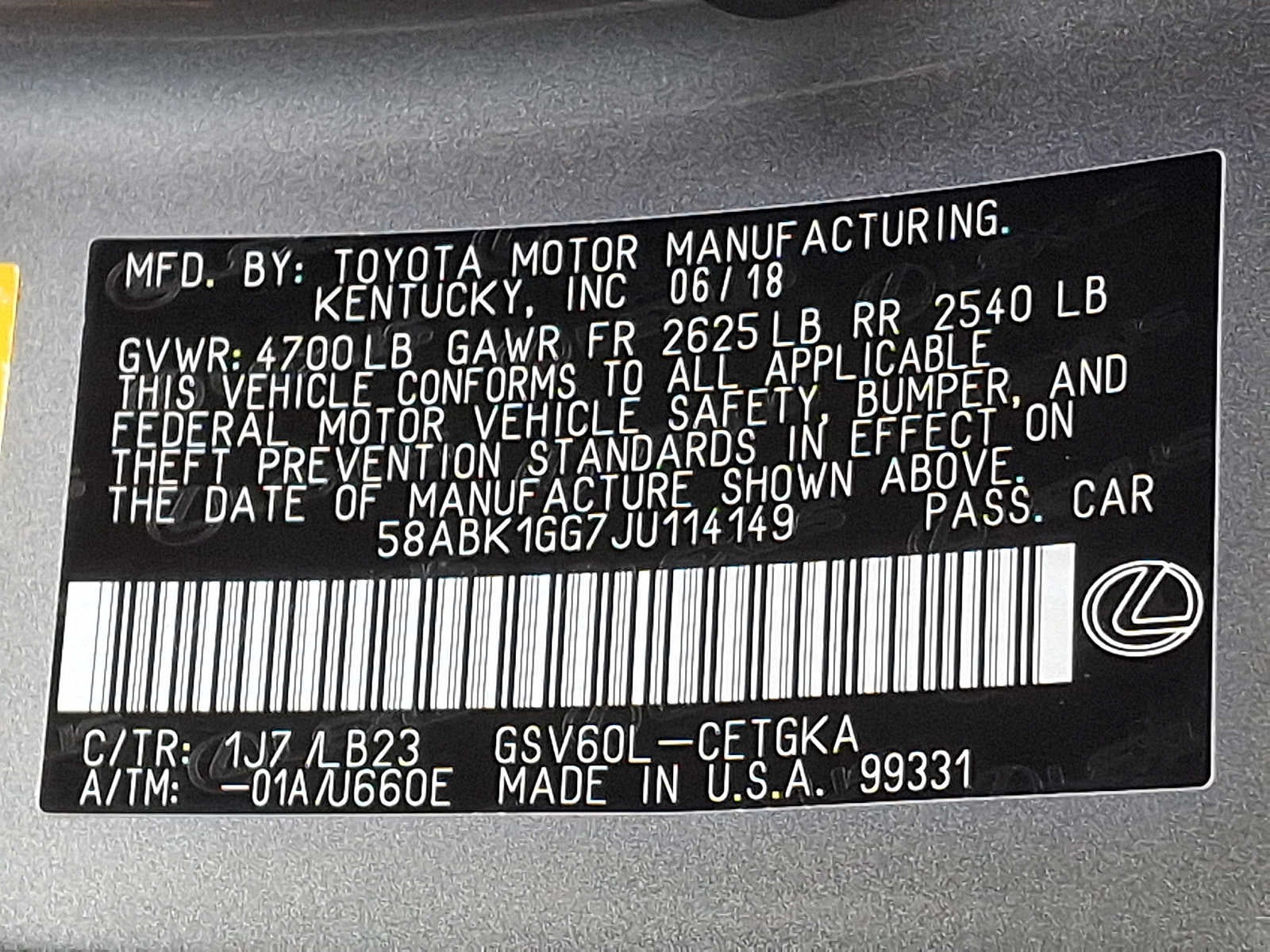 - Vehicle Name: Lexus ES