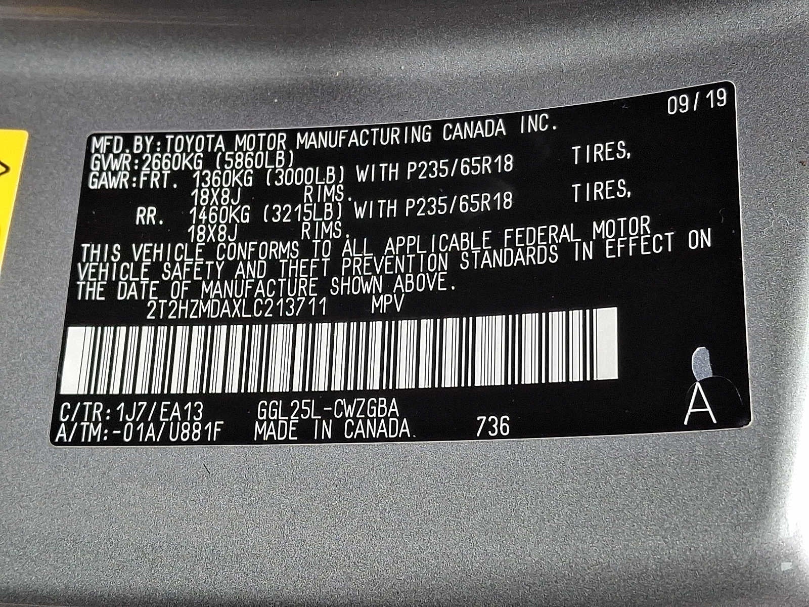 - Rear Tire Size: P235/65VR18
