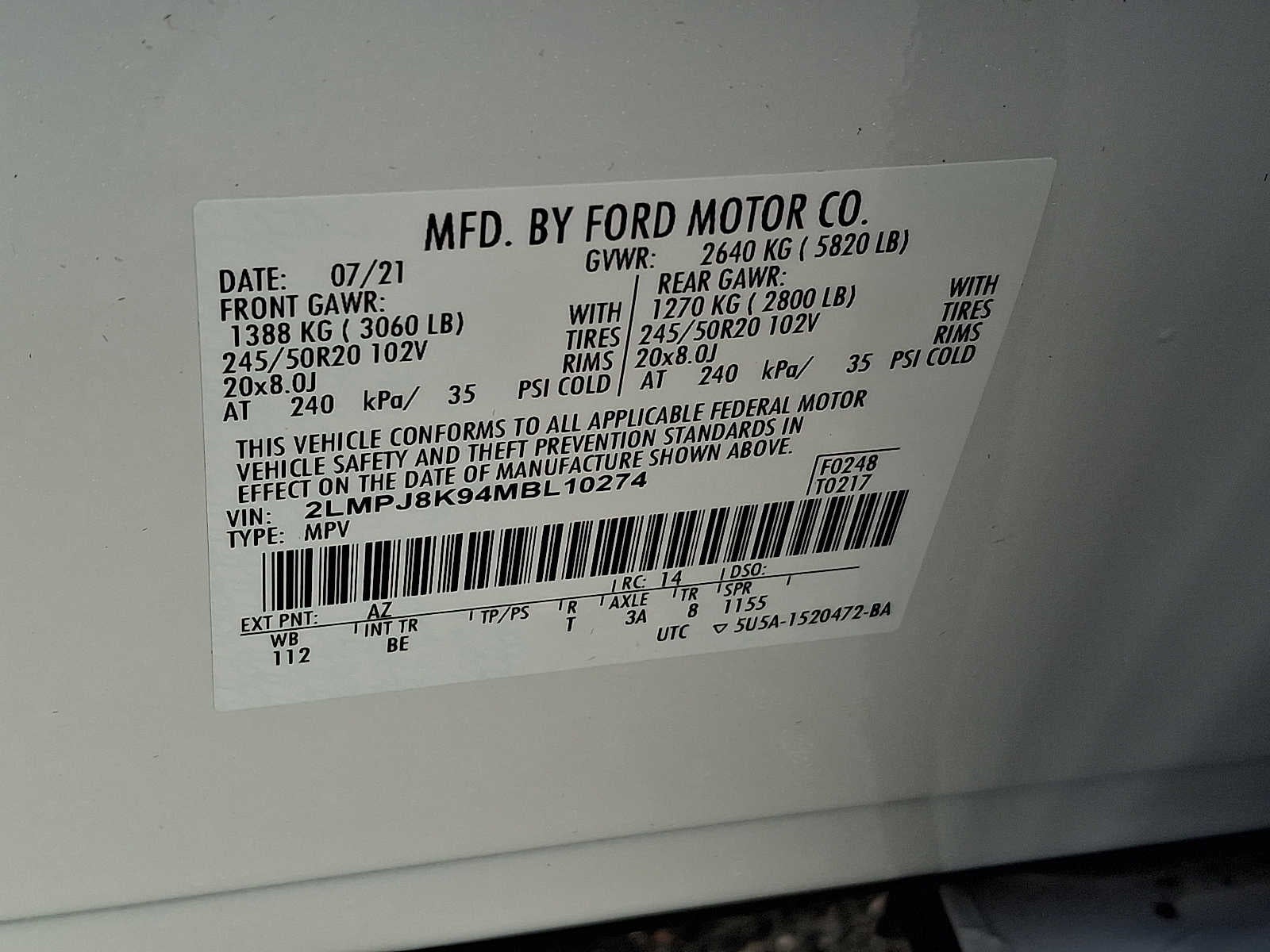 2LMPJ8K94MBL10274
