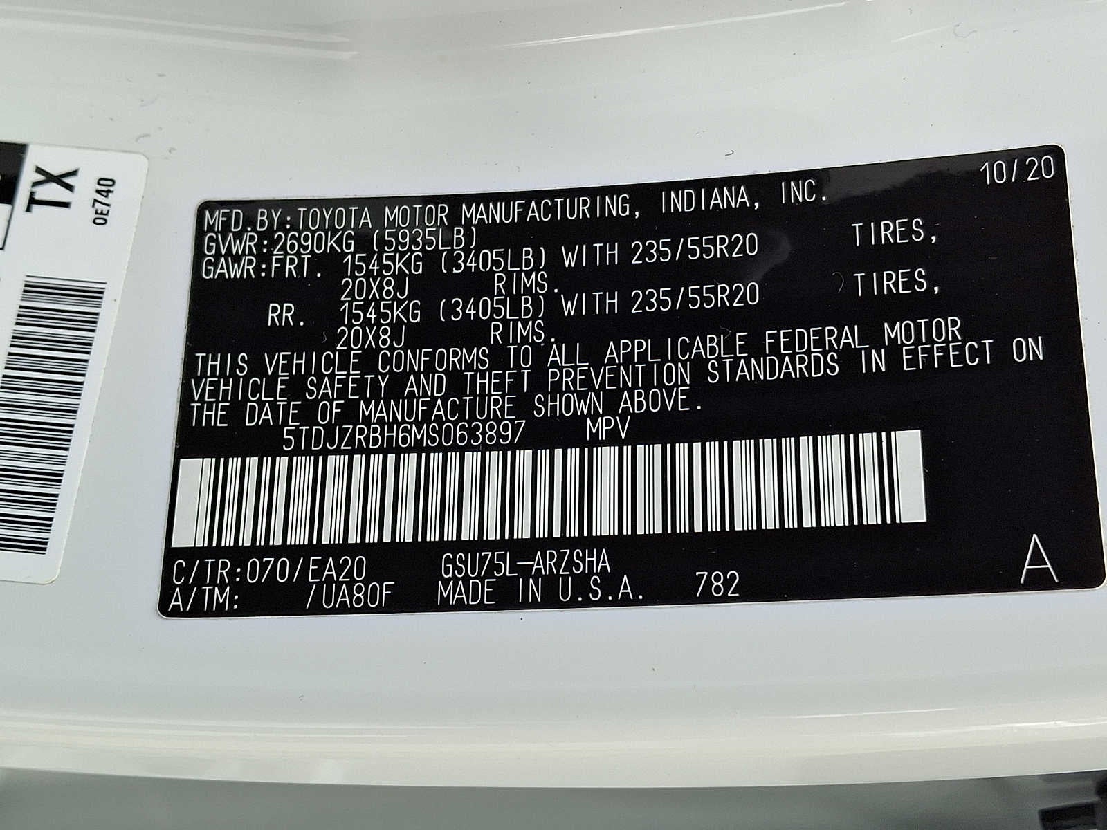 - Front Tire Size: P235/55VR20