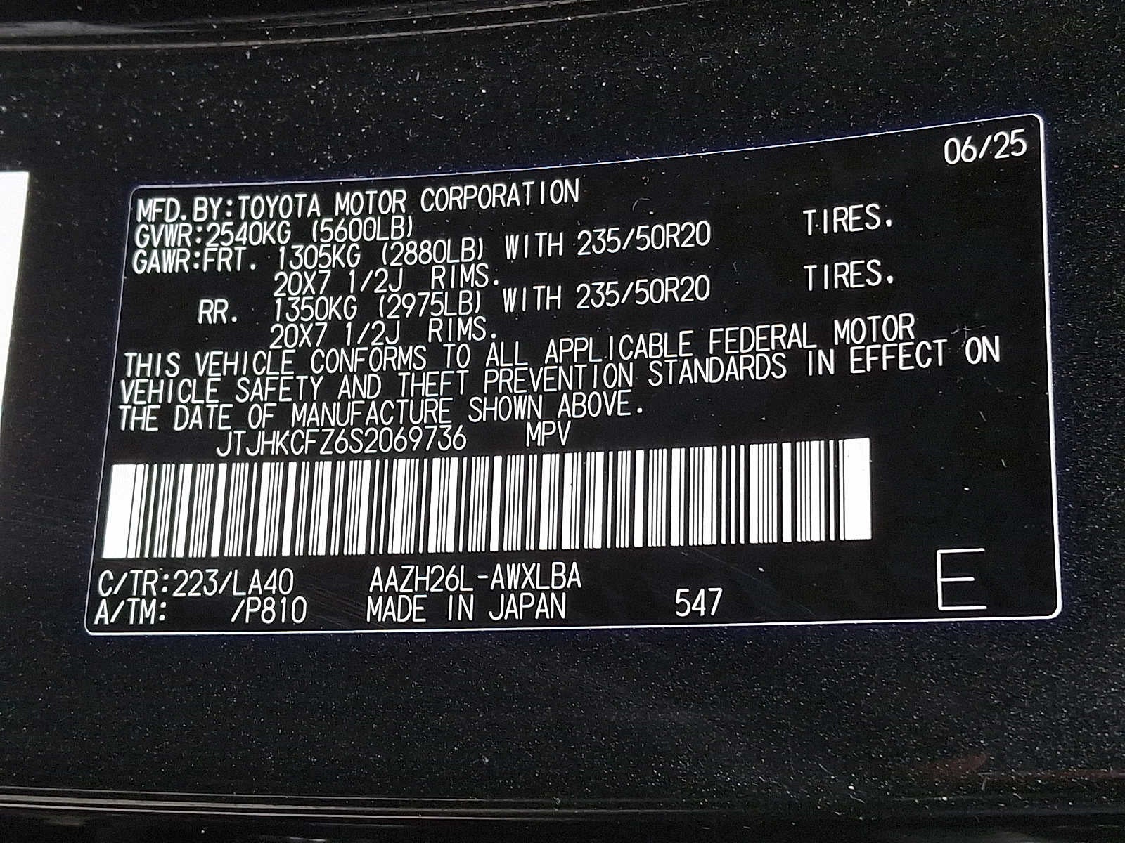 VIN: JTJHKCFZ6S2069736